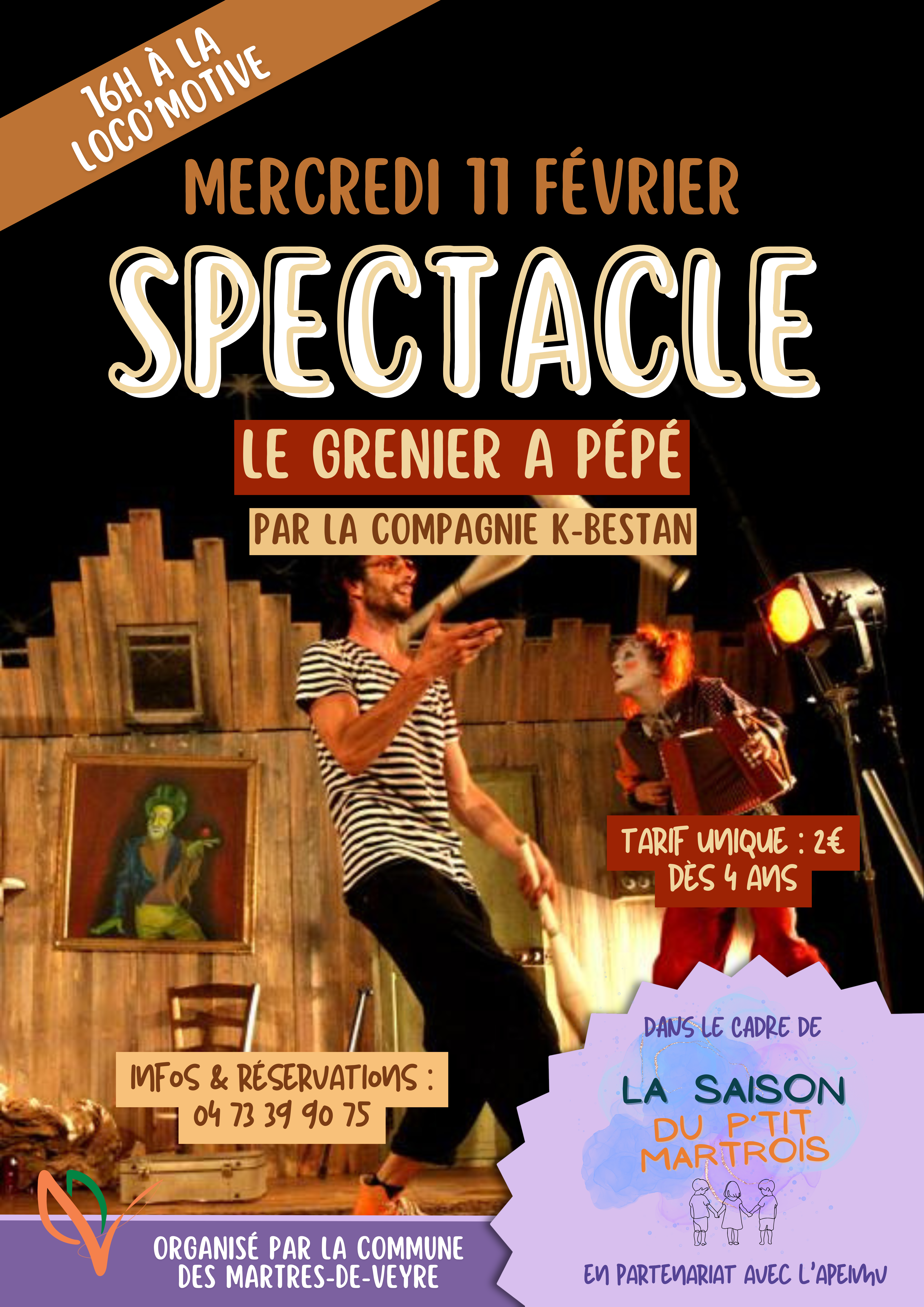 Mercredi 11 février à 16h à la Loco'Motive, la commune vous donne rendez-vous pour le spectacle "Le grenier à pépé" organisé dans le cadre de La Saison du P'tit Martrois 2026.
